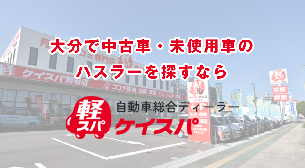 また、大分でハスラーを購入する際は、届出済未使用車を中心に取り扱うケイスパなら新車より安く・早く・安心して手に入れられます。