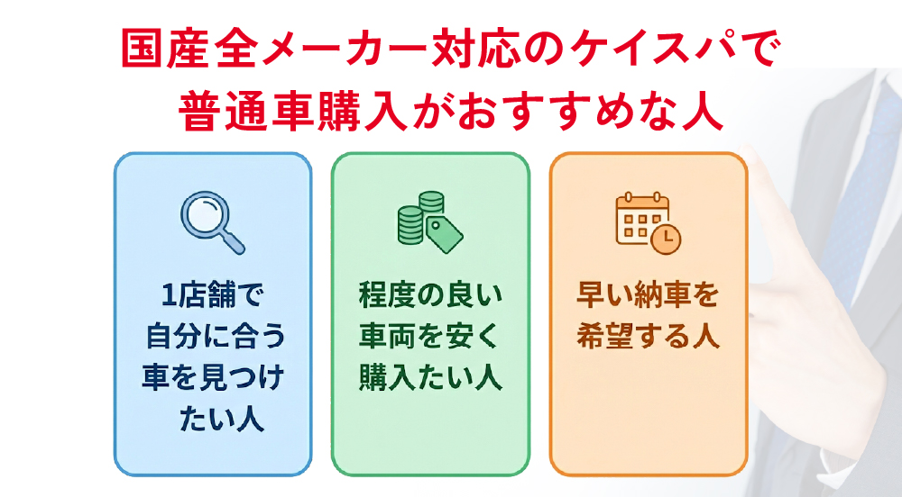 国産全メーカー対応のケイスパで普通車購入がおすすめな人